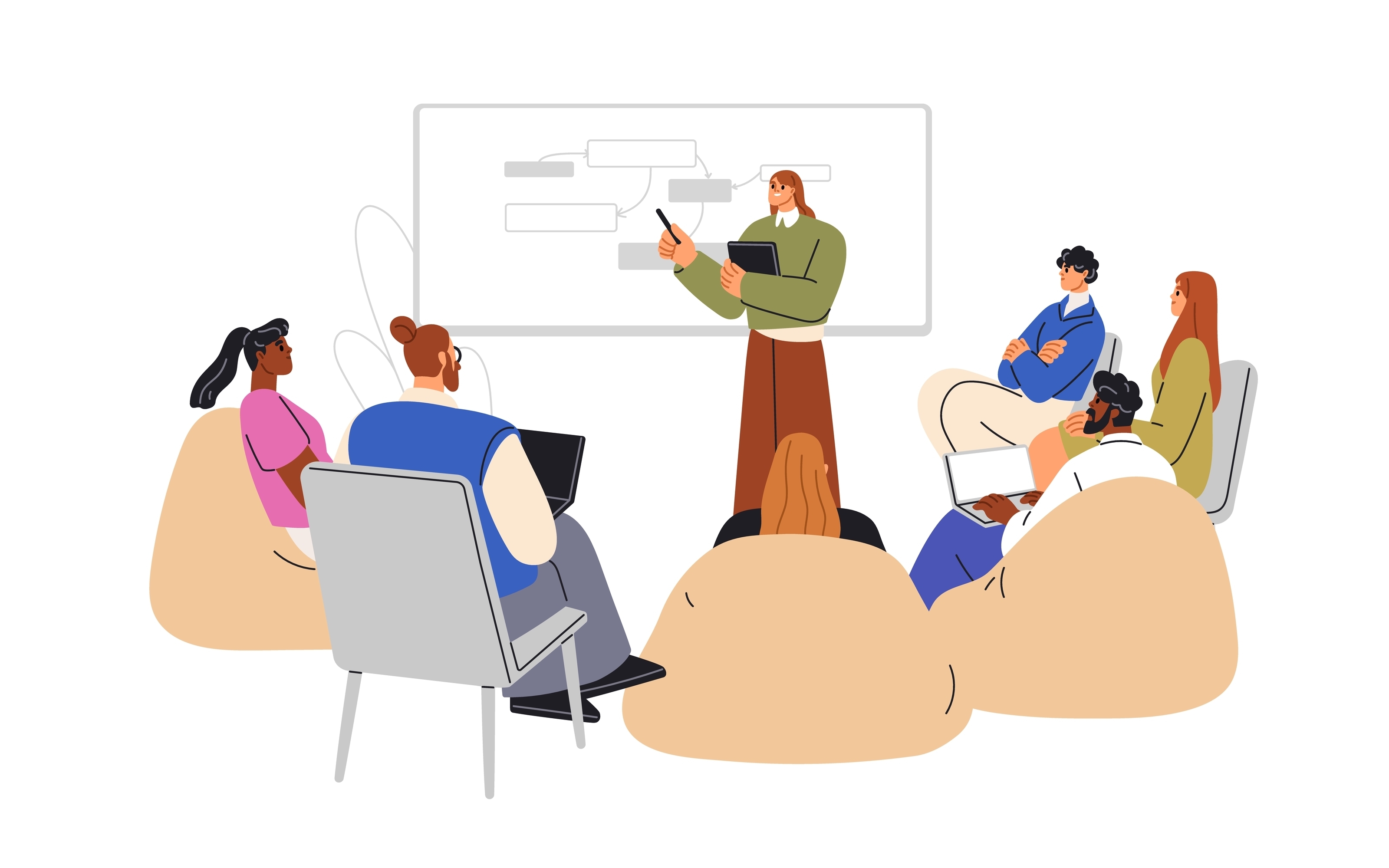集合研修やハイブリッド研修の講師紹介、日程調整、当日の運営補助まで一括で対応可能です。