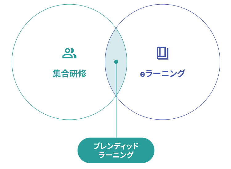 eラーニングは、インターネットを活用したオンライン学習そのものを指します。一方、ブレンディッドラーニングは、eラーニングと対面研修(集合研修やOJT)を組み合わせた学習手法です。