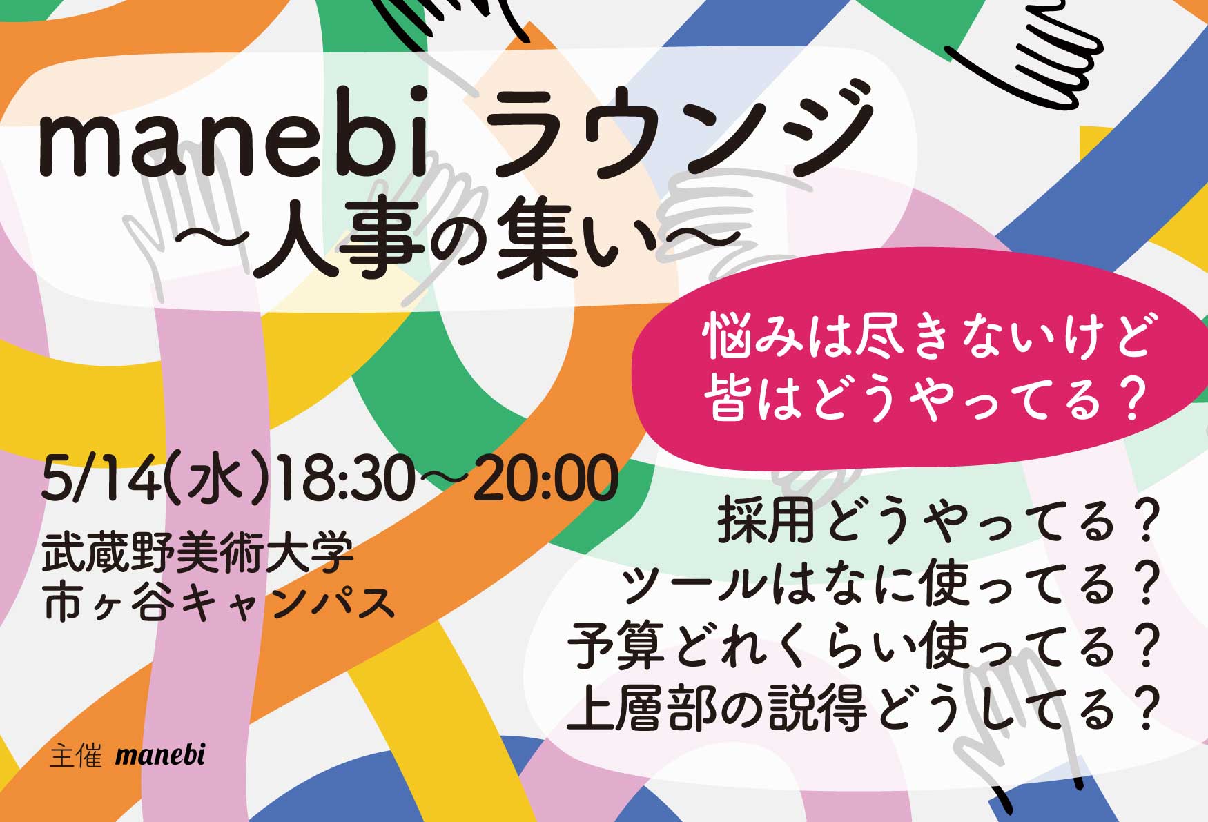 ふらっと来て喋って交流。みんなはどうやってるのかな?と気になることを共有し合って人事・教育の悩み解決のヒントを見つけましょう。採用のお悩み、教育のお悩み、コミュニケーションのお悩み、決済の取り方など人事につきもののお悩みを、仲間に聞いてスッキリしましょう。濃い関係を築き、継続的に仲良くなって、悩む人事の駆け込み寺に。濃くてゆるいサロンの始まりです。